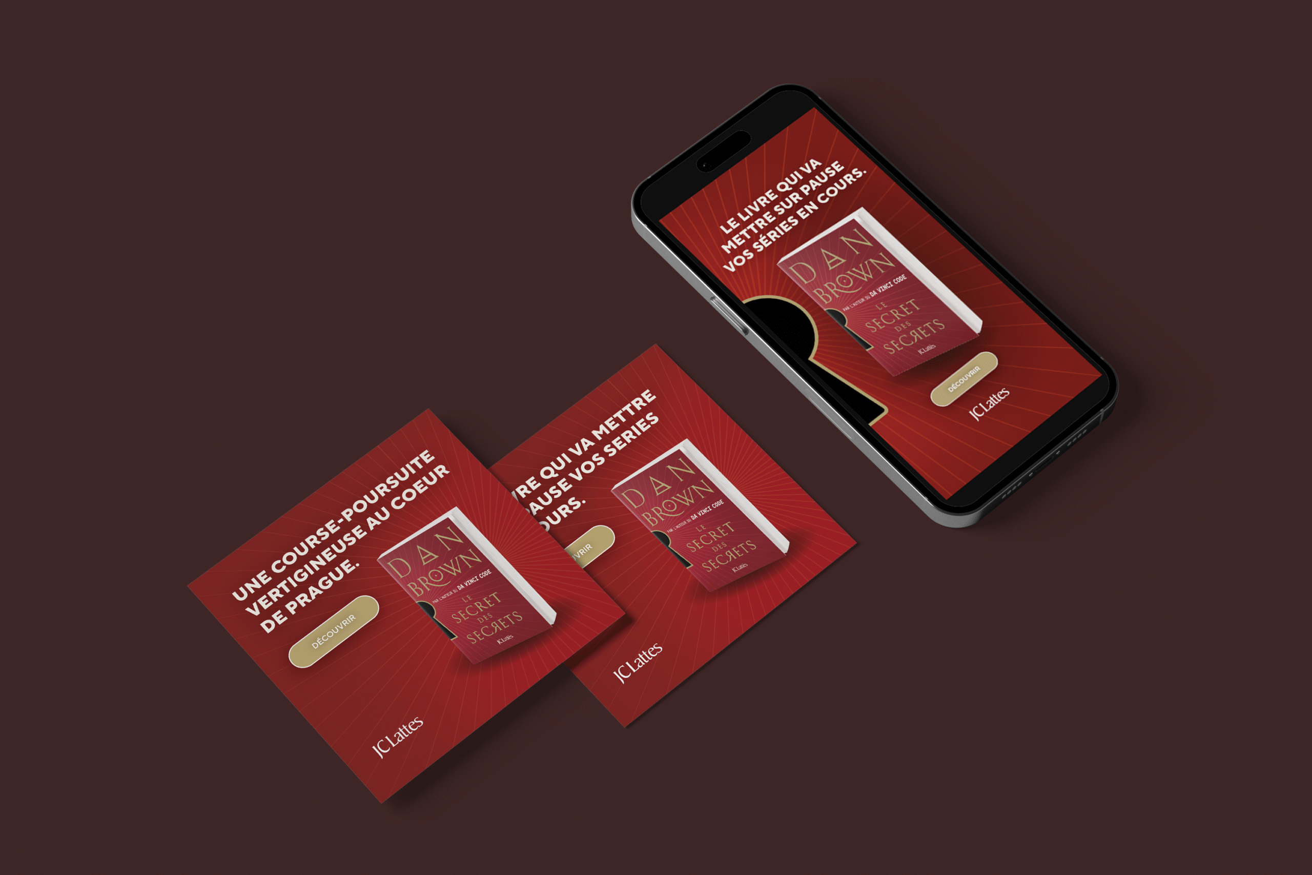 Création de visuels publicitaires pour les éditions JC Lattès, à l’occasion de la sortie du nouveau roman de Dan Brown. L’objectif était de concevoir une insertion presse, des bannières web et un habillage de site internet, en cohérence avec l’identité visuelle du livre, afin de créer un impact fort et une visibilité maximale auprès des lecteurs sur les différents supports.